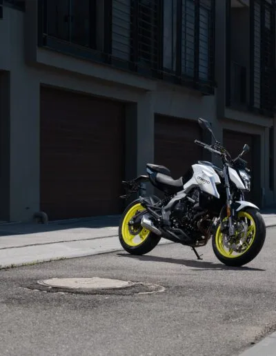 La CFMoto 650NK es una motocicleta naked que destaca por su diseño moderno y deportivo.